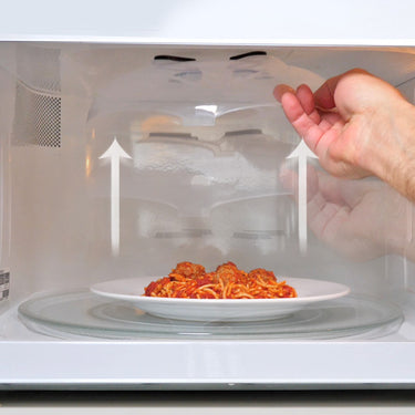 The 100% Microwave Safe Cover protects your food while heating to prevent pops, splatter, and messes.
