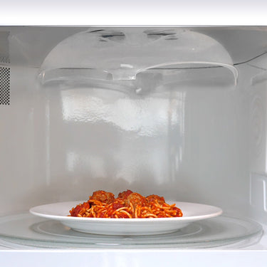 Heat up food. Hover Cover blocks splatter and messes